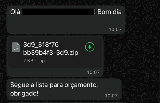 O golpe costuma começar com uma mensagem de saudação ou pedido de orçamento, acompanhada de um arquivo .zip. Assim que o usuário baixa e abre o conteúdo, um programa malicioso é instalado, permitindo que os golpistas acessem senhas, dados bancários e redes sociais. Em alguns casos, o vírus ainda possibilita o controle remoto do aparelho.