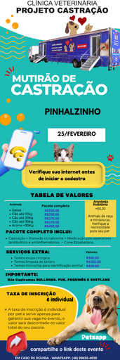 | Pinhalzinho recebe mutirão de castração a baixo custo no dia 25 de fevereiro