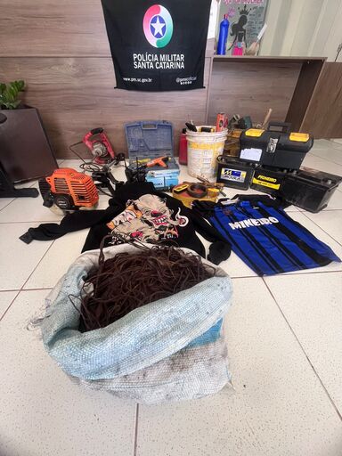 No interior do veículo, os policiais encontraram materiais que correspondiam aos itens furtados na obra. Durante a abordagem, os suspeitos confessaram a autoria do crime e admitiram participação em outro furto ocorrido na mesma semana em Pinhalzinho. Eles informaram que parte da fiação de cobre já havia sido comercializada e que pretendiam vender o restante dos objetos recuperados.