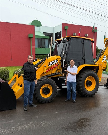 Nesta semana, foi entregue uma retroescavadeira JCB no valor de R$ 359.343,75, destinada ao Departamento Municipal de Estradas e Rodagens (DMER).